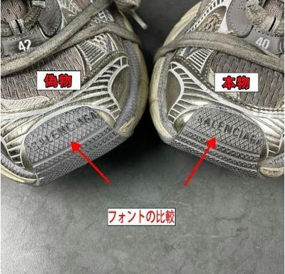本物:「BALENCIAGA」の文字が深くシャープに刻印