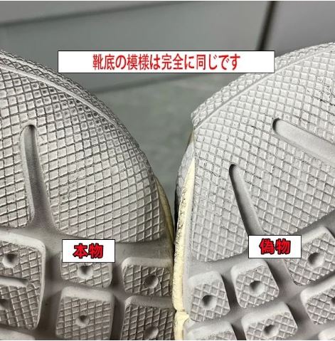 本物:各層の接合が精密で、ゴム素材の質感が高級