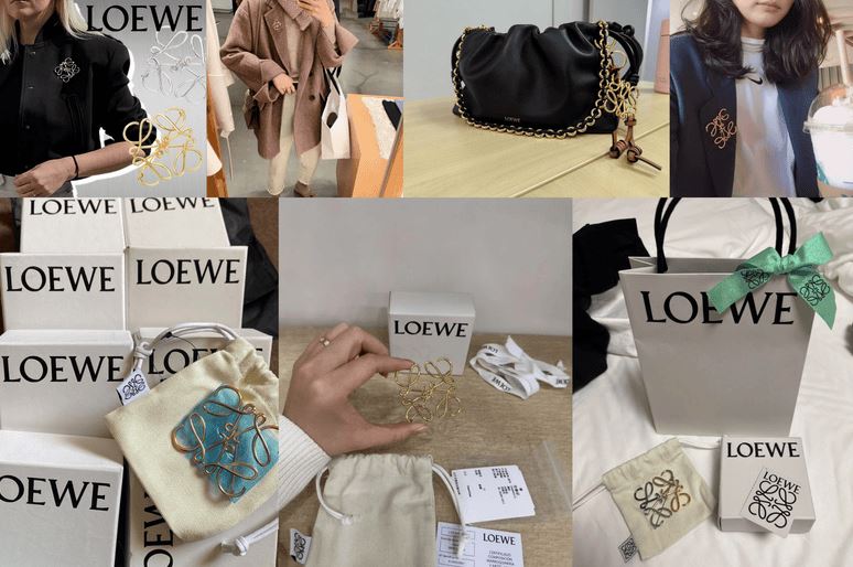 ロエベのブローチで最も有名なデザインは、「アナグラム(Anagram)」です。このデザインは、4つの「L」の文字を組み合わせたロエベのアイコンロゴをモチーフにしており、非常に洗練された美しい形状をしています。最近では、このアナグラムデザインがモダンに再解釈され、より現代的な印象を与えています。